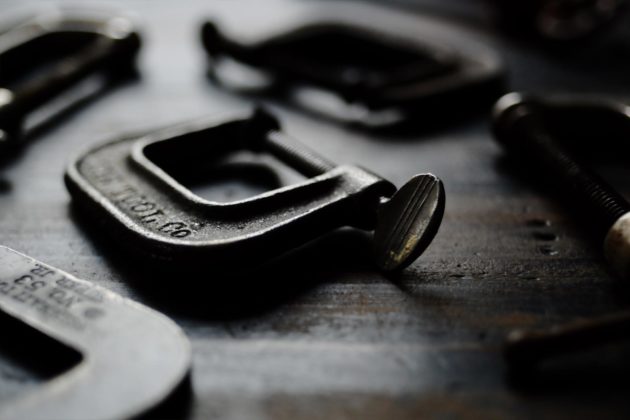 クランプは材料を台へ固定しておいたり、接着したものを乾燥するまでおさえておく時などに使用する工具なんですが、インテリアでも技ありな演出ができるアイテムなんです。今日アップした小さいクランプは、棚などに固定して飾ったり、板に固定してフックなんて使い方もできるサイズ感となっております。