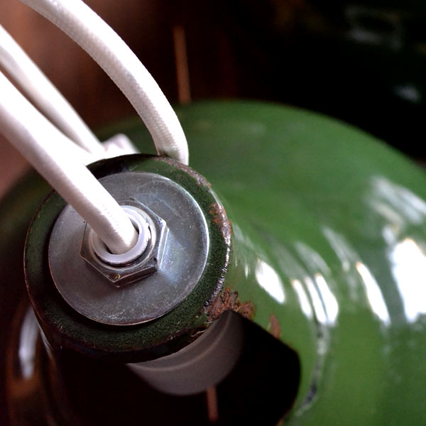 ヴィンテージのホーロー製ペンダントライト グリーン / ホワイト