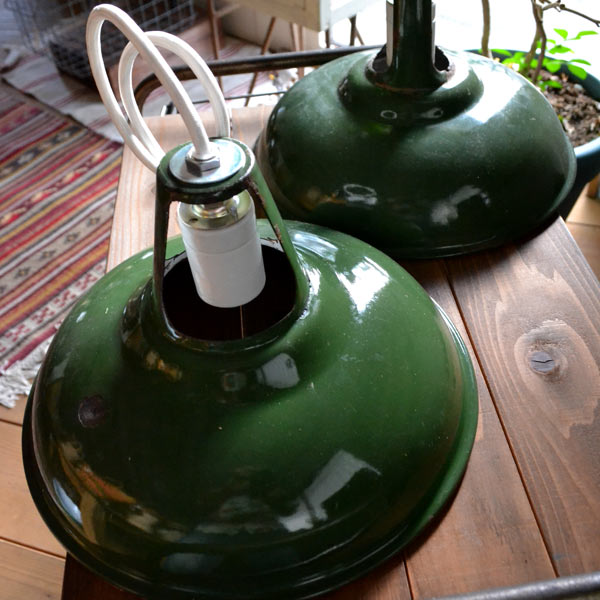 さて、少し前から予告しておりましたヴィンテージのホーロー製ペンダントライトを2点、ようやく今日UPできました。それぞれ色も形も違いますが、どちらも一般的なご家庭用の器具に簡単に取付けられる天井引掛シーリング式となっております。
