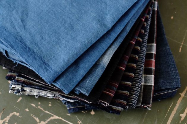 これらはもともと着物の裏地や布団カバーなどに使われていた布で、ほつれや色褪せ、ツギあてによるリペアなどが見られますが、意外と古臭さはありません。スカーフとして、あるいは鞄の持ち手に巻いたりしてもいい感じです。