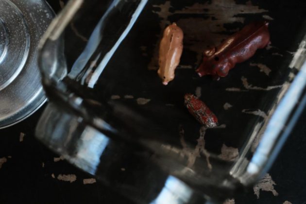 かつて商店なんかで使われていた四角いガラスの瓶を今日はアップしております。駄菓子や海苔などが入っていた容器になります。