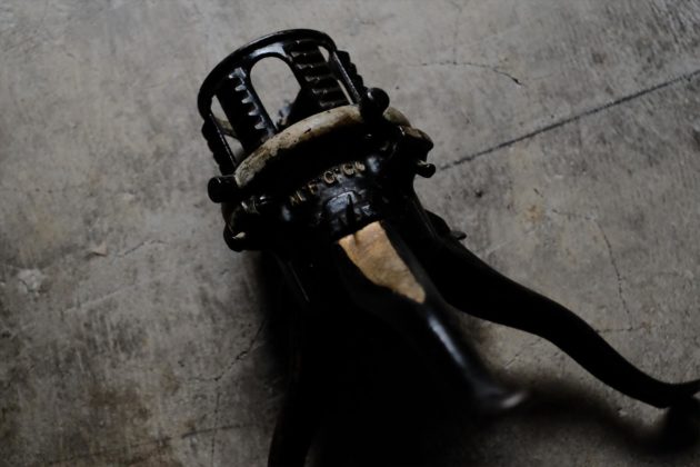 上の写真、ボロボロになったポーチは、もともとチェーンが収められていた袋。開封する際に、口をビリビリッと破いてしまったのでしょう。開封後、どのように使われていたのかはわかりませんが(ひょっとすると、そのへんに捨て置かれてたのかもしれませんが…)、生地はほつれ、シミが付き、なかなかの面構えとなっております。植木鉢のカバーに、もしくは工具やペグなどの収納にも使えるかと思います。
