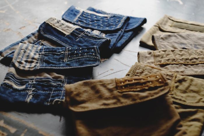 ヴィンテージ素材を使ったシンプルで肉厚なポーチ