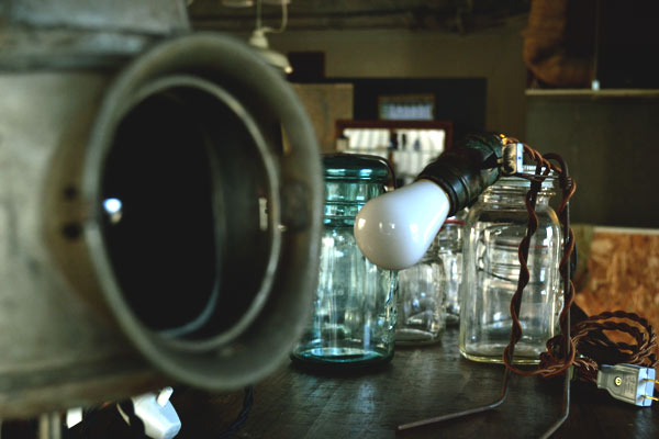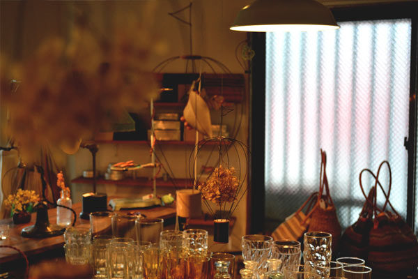 実験用具や工業用部品、楽器など、古くて味のあるさまざまなアイテムをパーツとして使ったり、ブリキや古材など色々な素材を用いた照明や時計、ワイヤークラフトなどの...