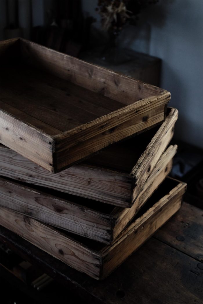 食品を製造する会社で使われていた、番重(ばんじゅう)と呼ばれる薄型の木箱です。パン屋などでは今でも木製の番重を使っているのをたまに見かけますが、近年はプラス...