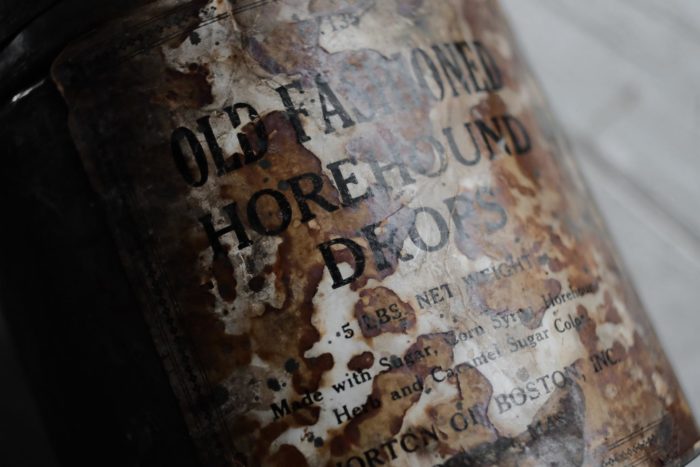 いろいろ入荷しております。工場のメッシュの屑カゴ、大小のブリキの缶類、コーヒー豆の麻袋、木箱、メイソンジャーも若干。写真はハッカ飴の缶のラベル。明日はブリキ... -