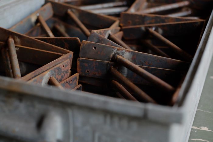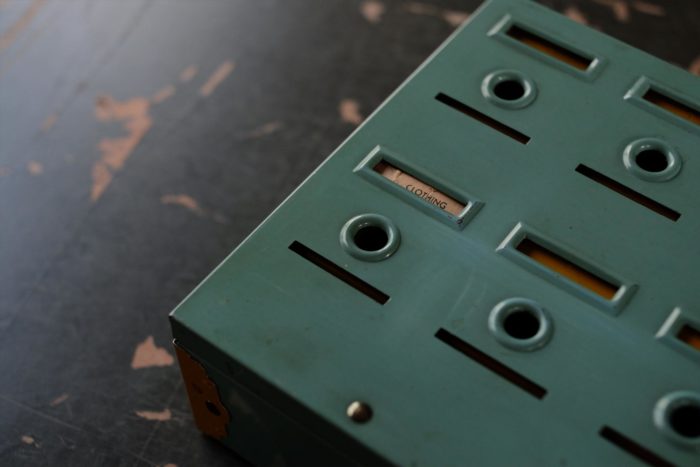 工場で長年使われ、錆びに錆びていたスチール製の小引き出し。重度の錆び好きにしかオススメできない一品です。 こびりついた黒ずみを落とし、凹凸は磨いてならし、現状... -