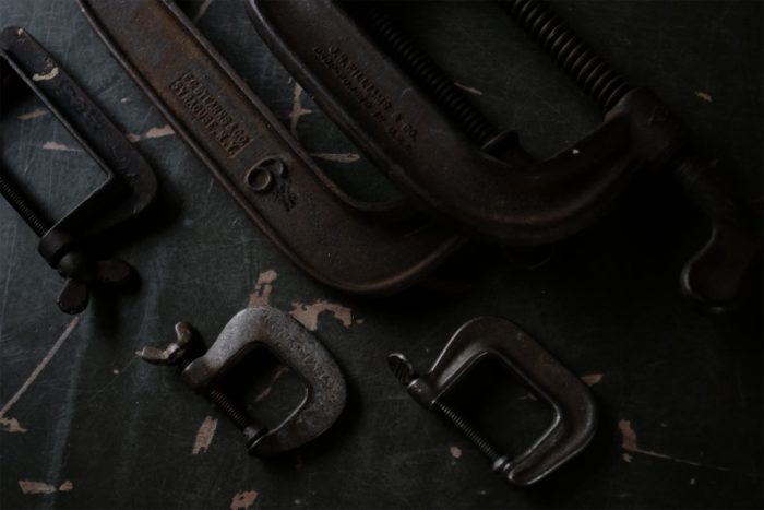 古びた鉄味が魅力たっぷりなクランプ、若干入荷しました。回す部分はバーではなく、つまみタイプのみとなっております。 クランプは材料を台へ固定しておいたり、接着し... -