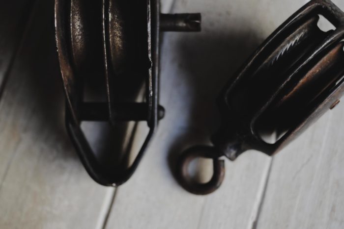 アメリカの工場で使われていた古いアイアンの滑車。古いものが好きな方の中には、使い込まれた鉄の素材感が好きという方も多いのではないでしょうか?サビも浮いた鉄の...