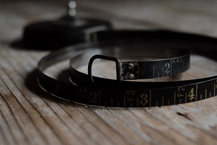 アメリカの製図用品の老舗Keuffel and Esserのテープメジャー(巻き尺)です。メジャー部分はメタル製で、長さは50と1/3フィート(約15.3メートル)。本体外側はレザー... -