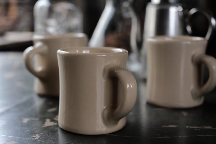 マグカップをもう一つ。底に「PA-CE-CO CHINA U.S.A.」と入った、やや小ぶりな一品です。CHINAは中国ではなく、陶磁器の意味になります。念のため。 表面の微妙な凹凸感... -