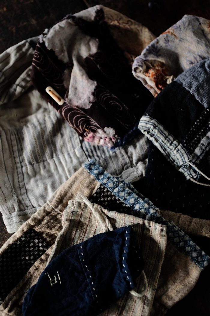 使い古した布で作られたポーチ