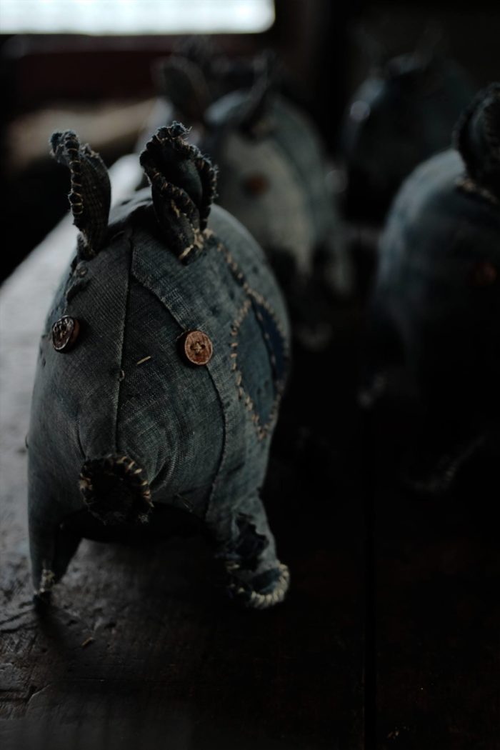 adequateさんから届いたボロのブタが5匹。 当店で所有していた、江戸時代から明治、ひょっとすると大正、昭和まで使われていたと思われる襤褸(ボロ)の敷布。破れては... -