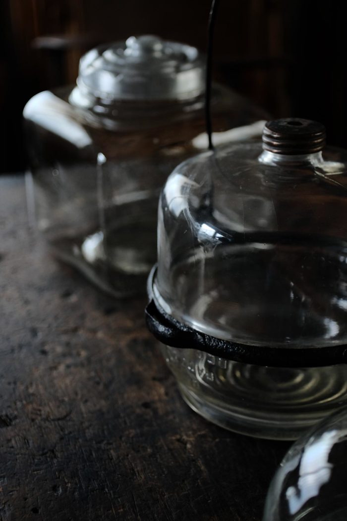 今月入荷したガラス瓶のうち2点をアップしました。 写真右手前は、灯油の貯蔵や給油に使われていたアメリカのジャグ。1920~1930年代あたりのものではないかと想像しま...
