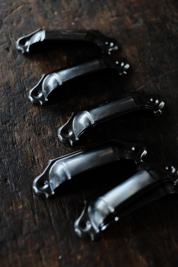 日本の古い船型の取っ手がデッドストックのコンディションで入荷しました。目を引くデザインではないものの、重厚な印象の一品です。 赤銅色の模様が小さく入っているた... -