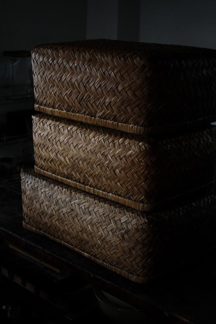 竹を編んで作られた、大正から昭和のはじめ頃の行李(こうり)をアップしました。入荷数は3点で、どれも衣類を収納していた大きなサイズとなります。 蓋と対になったこ...