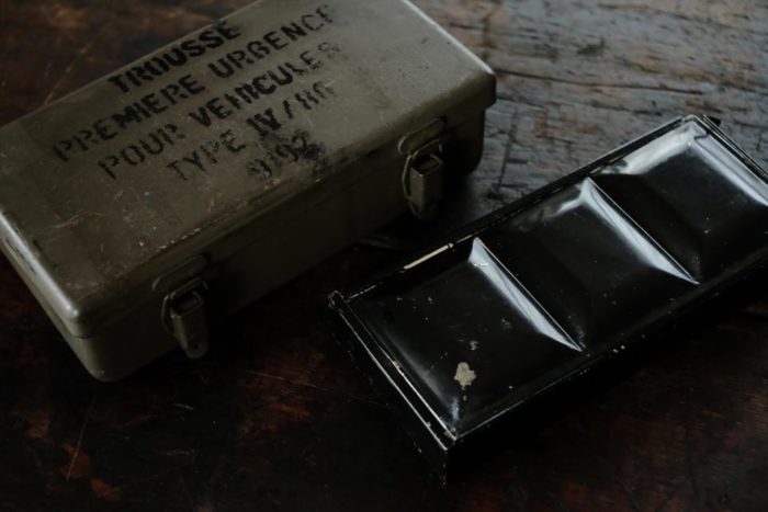 水彩絵の具ケースと自動車の応急修理キットの収納ケース
