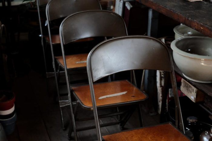 飴色へと育った木製の座面が魅力的な、アメリカはClarinの古い折りたたみチェア。日本ではこういった事務椅子の類で座面が木製というのはまず見かけない気がしますが、... -