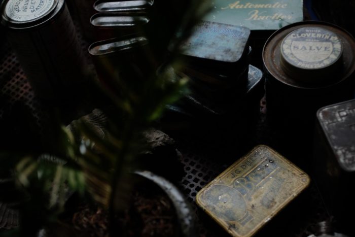 工場で使ってたテープカッターとなんてことないブリキの缶