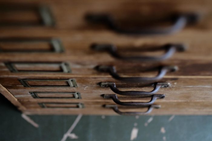 使い込まれた木の表情が魅力の日本の小引出し
