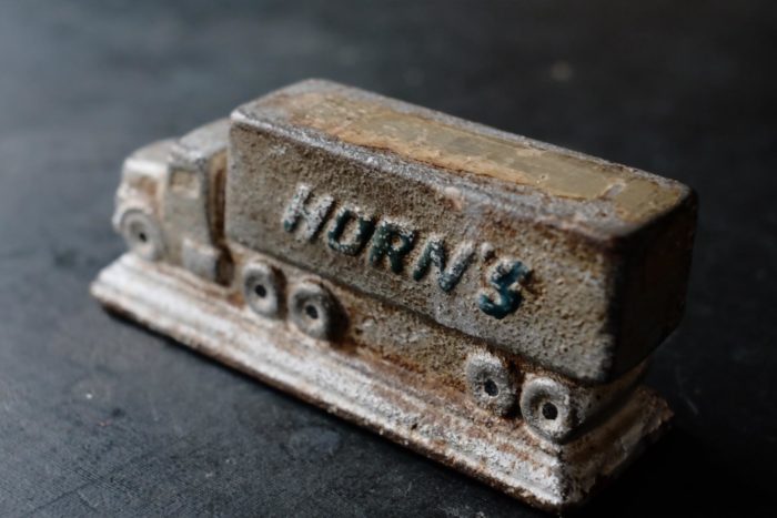 HORN'Sという会社のアドバタイジングと思われる1950~1960年代のペーパーウェイト。長さ的には習字で使ってた文鎮と同じくらいなんですが、とにかくこれが重たい。。。... -