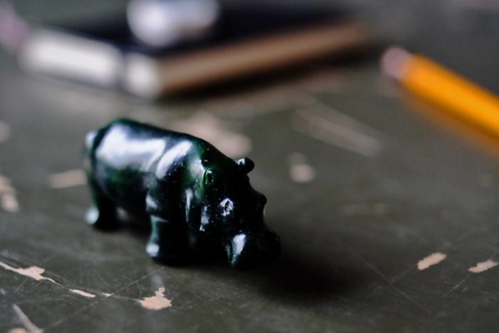 翡翠(ひすい)で作られたヴィンテージのカバのフィギュア。深い森を連想させる鮮やかなグリーンが意外とマッチしています。 Jade Hippopotamus Figure -