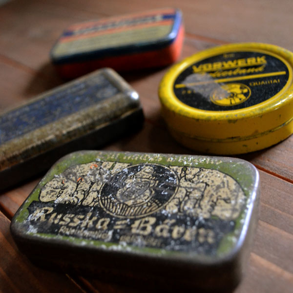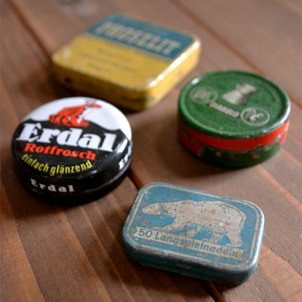 久々に新商品をUPしました。4月に引き続き、ヴィンテージのtinケース3点になります。 どれも楕円形で、手前の2つはまち針が収められていたtinです。中央が凹んだ独特な... -