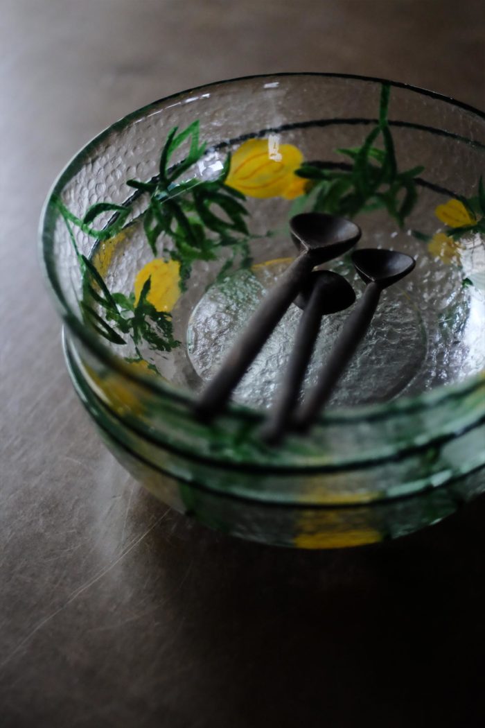 スモーキーなグラスとレイニーな向付