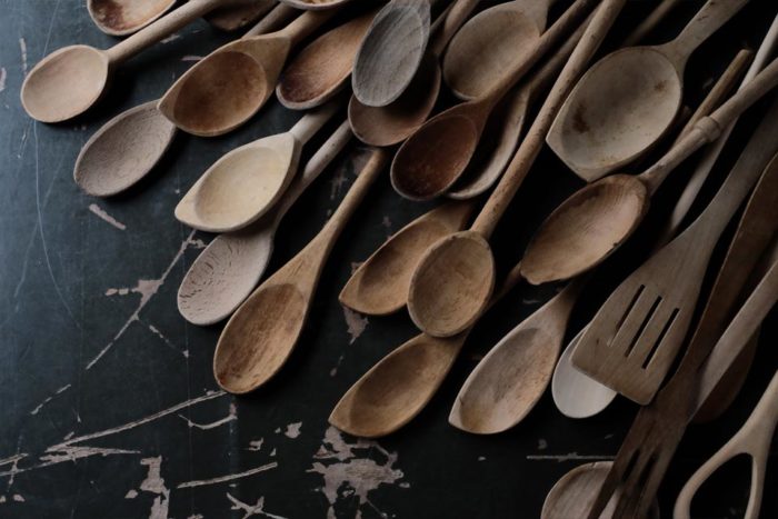 使い込まれた木のキッチンスプーン