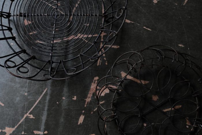 折りたためるワイヤーのバスケットは、大きなものだとランドリーバスケットなんてものもありますが、今日アップしたのは卵やフルーツなどを入れていたと思われる卓上サ... -