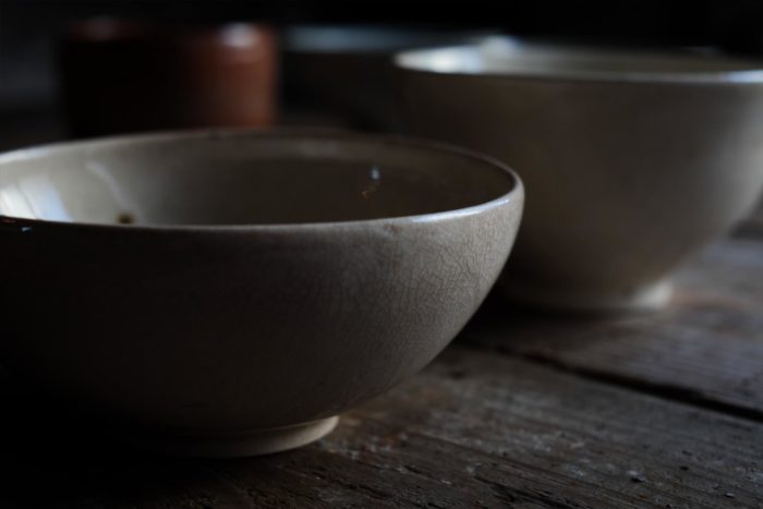 ご飯茶碗を2つ、どちらも統制陶器になります。統制陶器は物資が不足していた第二次大戦中に作られたものですので、年代的にはさほど古いものではないのですが、そのぶん... -