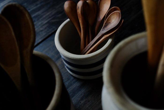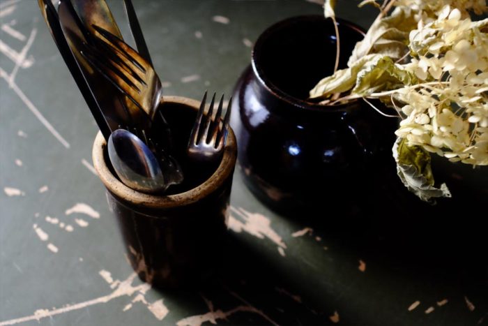 木製のカトラリーや調理器具との相性がいい陶器の入れ物。日本では馴染みがありませんが、アメリカではCrockなんて言い方をします。 もちろん調理器具の収納だけではな... -