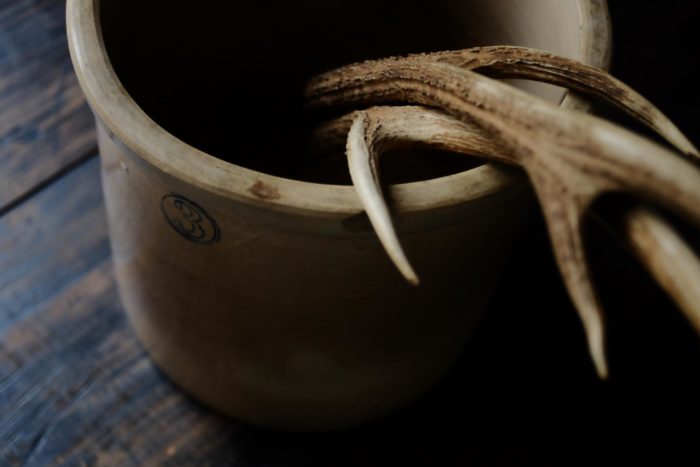 あたたかみのある古い陶器の容器を2点ほど追加しました。 小さ方は塩や砂糖などの調味料を入れるために使われていたキャニスター。少々雑でプリミティブな印象を受けま... -