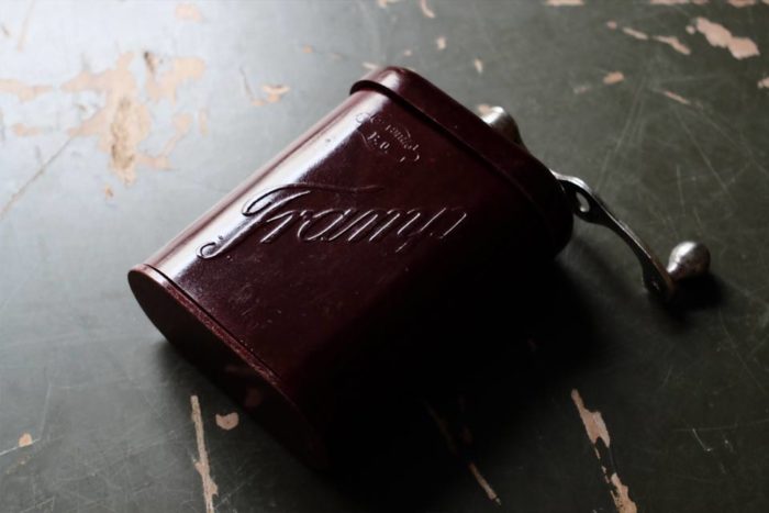 第二次大戦時にドイツ軍の兵士用に作られたベークライト製のコーヒーミル。非常にコンパクトなこのミルで削れる豆の量は、コーヒーおよそ一杯分。しかしながらジャケッ... -