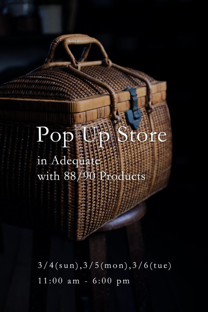 来週末から三日間、88/90 Productsさんと一緒に静岡県にあるadequateさんのアトリエにお邪魔して、ポップアップストアを開催いたします。 日にち:3/4(日)、3/5(月)... -