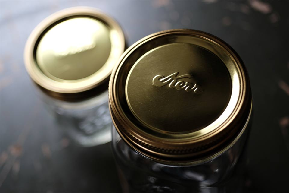 蓋はBallとKerrの2種類で、どちらもワイドマウス用。ワイドマウスでしたら、他社製品にも装着が可能です。カラーはどちらもゴールドで、付けてみると現行品にはない印象に早変わり。