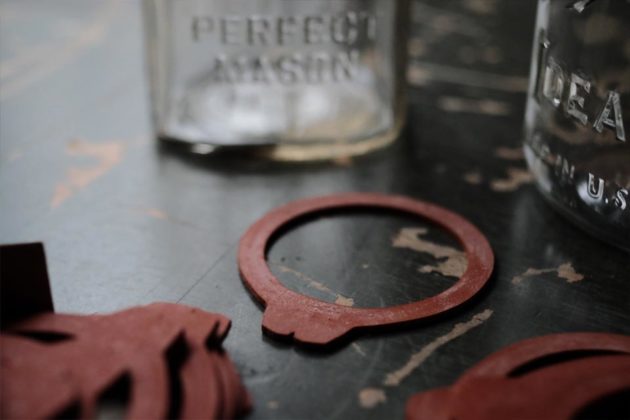 蓋はおそらくペラペラの金属製のものが純正だったはずですが、この2つのKerrにはPrestoの蓋が付いています。このPrestoはガラスの蓋をアルミのリングで締めて留めるという、ちょっとかわったタイプになりますが、非常にいい蓋です。ガラスは金属のように錆びることがないため、食べ物の保存にも使いやすいというメリットがあります。またアルミは腐食しにくい性質がありますので、いわゆる赤い錆びは発生せず、やはり衛生的にお使いいただけます。