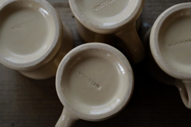 ブランドのわかるものはめったに使わない某家具店のカタログにバーンと大きく取り上げられたことで一躍人気に火のついたNestleのヴィンテージマグ。砂粒模様が入ったベージュ地の上に「RICH’N CREAMY HOT COCOA」の文字が規則的に入った、とてもあたたかみのあるデザインの一品です。