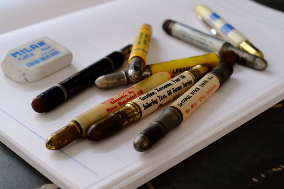 ヴィンテージの鉛筆ホルダー 2015 6/22 インテリア 最近めっきり見なくなった鉛筆ホルダー。こちらはかつてアメリカで企業のピーアールに使われていたヴィンテージの一品です。短くなってもすぐに捨てるんじゃなくて、とことん使い倒す! ちなみにアメリカではこれのことをBullet Pencilなんて呼びます。 Advertising Bullet Pencil インテリア 写真展2日目 火曜は定休です 関連記事 真鍮の万能トレー 2026-03-29 吊り下げても使える小さなライト 2026-03-22 カプセルランプとスポットライト 2026-03-19 スカイライン「Mr & Ms」プランター 2026-03-17 デキャンタひとまず12本 2026-03-16 デキャンタコレクション スタート 2026-03-14 小さな値札立て 2026-03-13 工場系カプセルランプ 2026-03-12