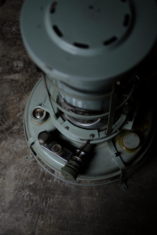 ストーブ本体は中に格納されていて、点火や給油の際は取り出します。筒1本の径はAladdinよりも小さめですが、2筒あるので結構暖まります。