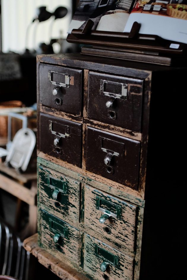 錆びに錆びたまん丸いシェードのRodaleのデスクランプ。アイアンのベースの置型はよく見かけますが、クランプ付きのRodaleのランプは珍しいのではないでしょうか。