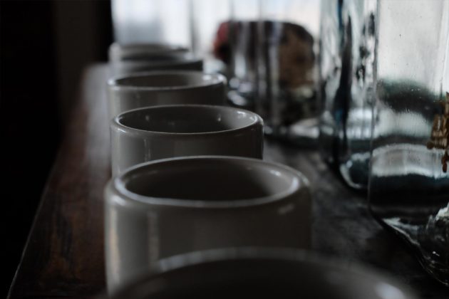 前回ご紹介したネイビーウォッチマグは形が寸胴タイプでしたが、続いてアップしたのは裾がすぼまったタイプになります。横から見た図はまさに白磁の湯呑み。ですが、上から見たら違和感を感じるかもしれません。ネイビーウォッチマグはちょっとやそっとでは壊れないよう、作りが厚手なんです。持ち上げてみると、さらによくわかります。サイズ感は日本の湯呑みでも、重さは全然違っていて、ずっしりと重たいです。