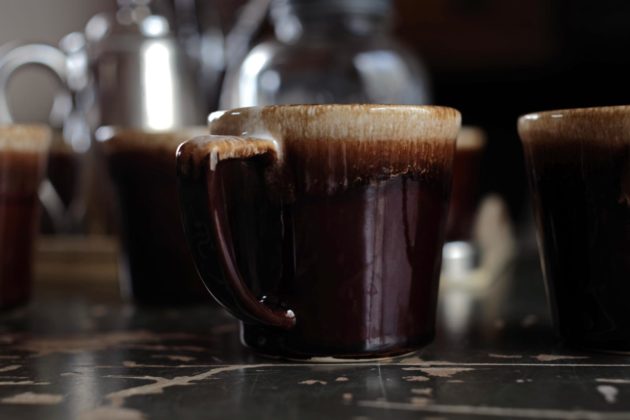 上下ともに縁が丸みを帯びたデザインのWallaceのマグカップです。持ち手の下あたりでわずかにくびれるため、裾は本当に丸っこく見えます。
